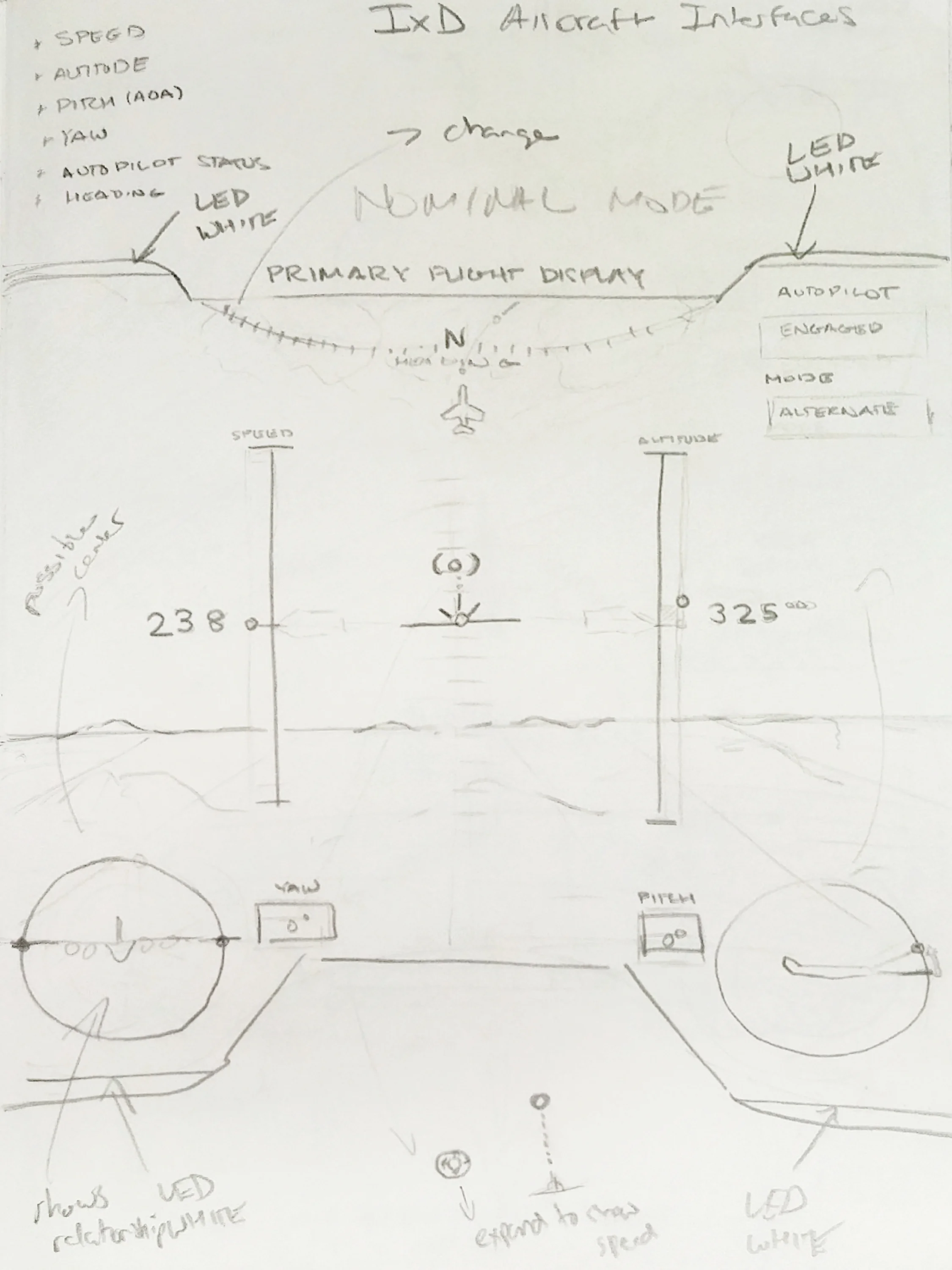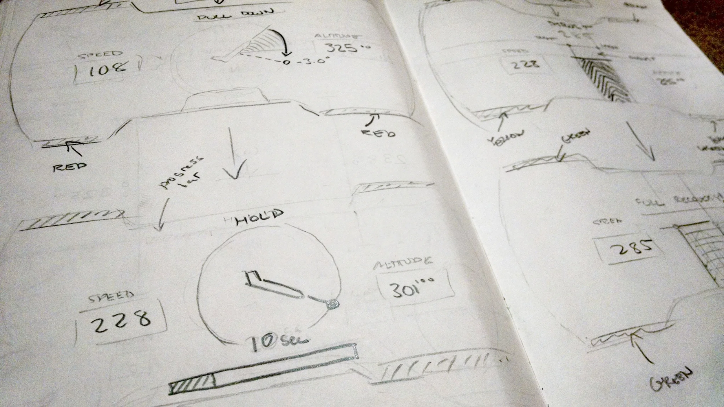 After identifying a set of key problems to address in a future design, I created a series of sketches and wireframes focusing primarily on visualizing flight envelope and angle of attack.